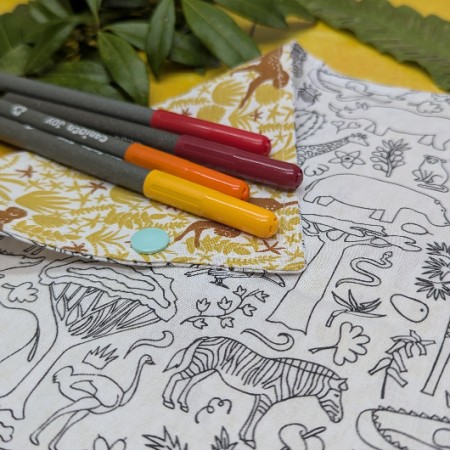 Les coloriages lavables nomades sont disponibles en plusieurs coloris et imprimés à collectionner. Ils sont toujours fabriqués à la main, en toutes petites séries dans mon atelier en Bretagne