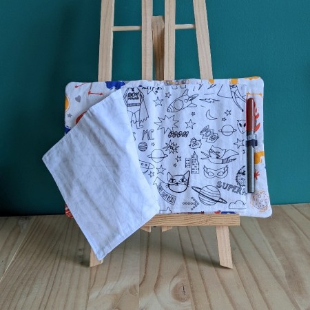 Offrez une expérience créative et écologique avec notre cahier d'activités lavable ! Idéal pour les enfants passionnés par l'espace et les super-héros, ce carnet réutilisable stimule l'imagination tout en réduisant les déchets.