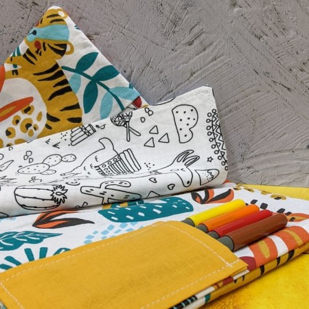 Ce carnet en tissu est composé de plusieurs pages réutilisables, proposant trois activités différentes. Une fois terminé, un passage en machine et hop, c’est reparti pour des heures de créativité, tout en respectant l’environnement !