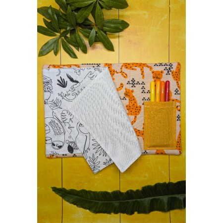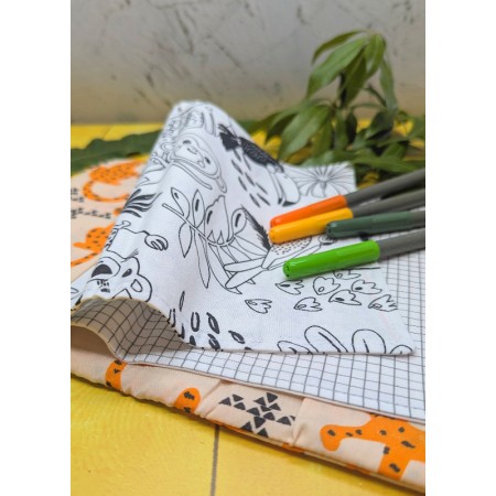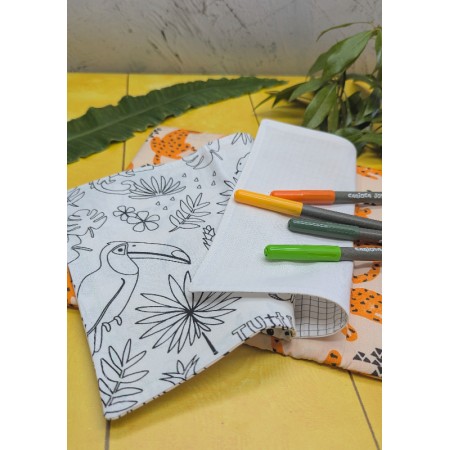 Un cahier de coloriage lavable en tissu, pensé pour durer et accompagner les enfants partout.