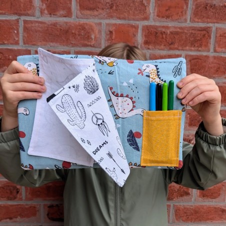 Ce cahier en tissu Oeko-Tex propose 4 pages réutilisables avec différentes activités :