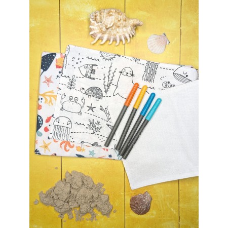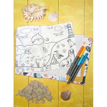 En retournant la pochette sur l'envers, on découvre un petit coloriage lavable à emporter...